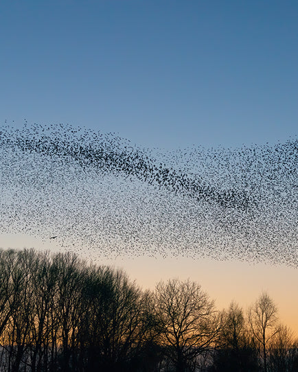 Takes its inspiration from murmuration, a special type of flocking named after the sound created from thousands of wingbeats and soft flight calls. Unique and visually striking, murmurations move across the sky in arresting shape-shifting clouds, symbolising co-operation and unity.